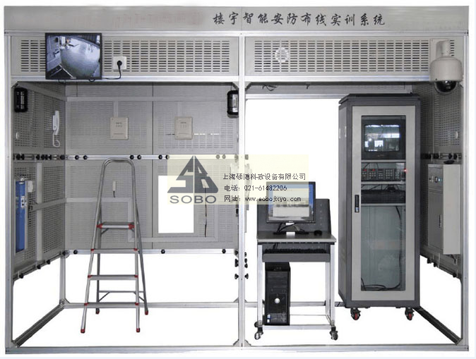 建筑模型由標準規格的鋁合金工業型材和網孔式安裝板組成,設有總電源箱。建筑模型分為智能大樓(小區)和管理中心兩部分,安保區域設有單元門和單戶窗,實現智能小區對講門禁系統的設備安裝、智能大樓室內安防系統的設備安裝等工程訓練,實現單元和單戶可視對講功能。