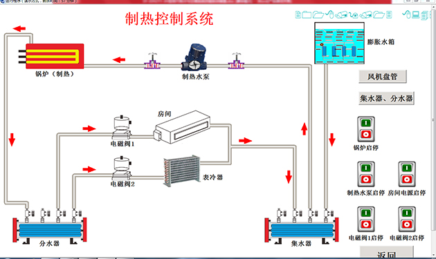 每個終端處理機配置制冷系統(tǒng)流程板、控制電路流程板、溫度表及壓力表,可觀測到機組的全部控制電路。