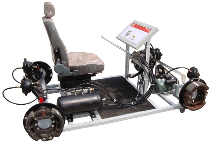 1.選用輕卡汽車制動系統原車材料、前后剎車機構等組件,合理裝配在鋼制移動臺架上;