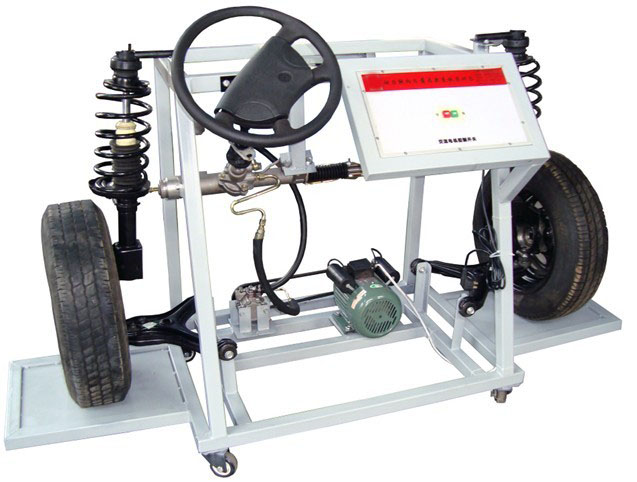 產品由原廠液壓助力式方向機、轉向角、減震器、方向盤、輪胎、可移動式臺架等組成。采用國產車系列液壓助力式轉向系統實物為基礎,充分展示汽車轉向系統的組成結構和工作過程。適用干中高等職業技術院校、普通教育類學院和培訓機構對汽車底盤的理論和維修實訓的教學需要。本實訓臺功能齊全、操作方便、安全可靠。