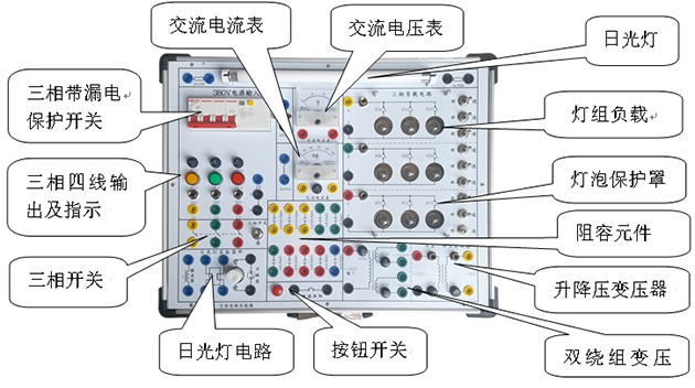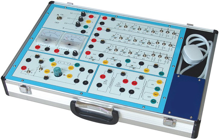 交流電路實驗箱 主要是進行"電工學"及"電路原理"中的強電部分實驗,如單相交流電路、三相電路、日光燈電路實驗。本實驗箱由模塊單元和元件庫相結合的板面構成,全部采用歐洲標準的安全插座和安全實驗導線, 連線方便,接觸可靠,而且壽命長、效率高,有效預防觸電隱患。實驗面板上印有元件符號及主要參數便于學生識別。實驗箱結構緊湊實用直觀,安全可靠,能有效培養學生的動手能力,維修方便、簡捷。可滿足各類高、中等院校及職業技術類院校開設的電工典型實驗。