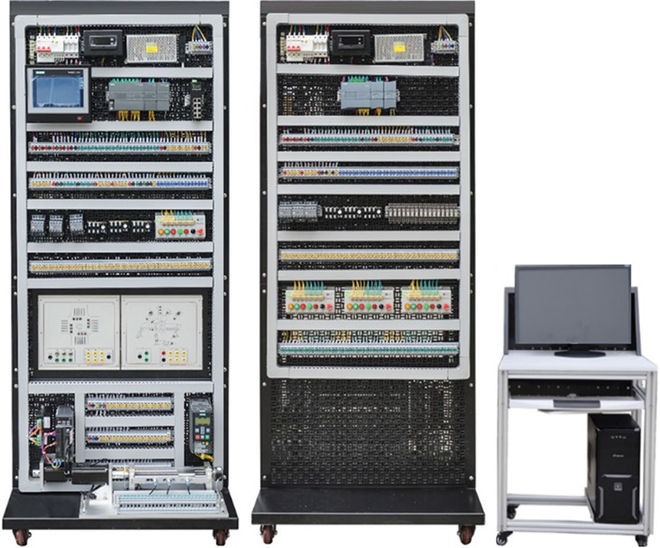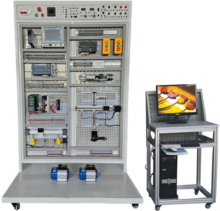 PLC可編程實驗實訓(xùn)平臺,PLC實訓(xùn)裝置,PLC實訓(xùn)臺,PLC可編程實訓(xùn)考核裝置是集可編程控制器、通信編輯器、編程軟件、工控組態(tài)軟件、仿真教學(xué)軟件、模擬控制實訓(xùn)掛箱于一體,可直觀地進(jìn)行PLC的基本指令訓(xùn)練,多個應(yīng)用廣泛的PLC實際應(yīng)用模擬實訓(xùn)和實物控制實訓(xùn),同時也為了高層次的設(shè)計開發(fā)實訓(xùn)提供良好的條件。實訓(xùn)裝置還配備三相鼠籠異步電機(jī)、繼電器、變頻器能完成多個電氣控制實訓(xùn)。是專為職業(yè)院校及中職學(xué)校開設(shè)的可編程控制器技術(shù)及其應(yīng)用等課程實驗配套設(shè)計的,可完成PLC編程控制器技術(shù)課程的相關(guān)教學(xué)實訓(xùn),是大中院校及中職理想的實驗設(shè)備。