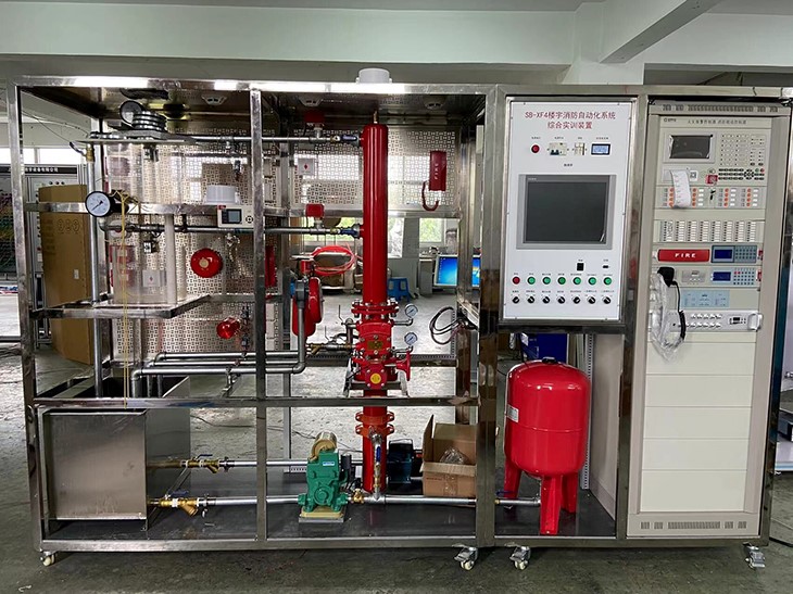 樓宇消防自動(dòng)化系統(tǒng)綜合實(shí)訓(xùn)裝置,消防聯(lián)動(dòng)控制中心及噴淋滅火系統(tǒng)實(shí)訓(xùn)裝置"依據(jù)[建筑消防設(shè)計(jì)規(guī)范]進(jìn)行標(biāo)準(zhǔn)設(shè)計(jì),該系統(tǒng)具有消防控制聯(lián)動(dòng)中心、消防廣播電話中心、消防噴水滅火系統(tǒng)典型結(jié)構(gòu),能夠完成火災(zāi)探測,早期探測,火災(zāi)報(bào)警,現(xiàn)場滅火等演示性實(shí)訓(xùn)項(xiàng)目和消防管理中心,同時(shí)還能清楚的展示噴淋滅火系統(tǒng)的典型設(shè)備構(gòu)成和系統(tǒng)工作原理,通過該裝置的操作學(xué)習(xí),學(xué)生可以對樓宇中噴水滅火系統(tǒng)的結(jié)構(gòu)有一個(gè)全面的了解,噴淋系統(tǒng)與聯(lián)動(dòng)動(dòng)控制中心系統(tǒng)實(shí)現(xiàn)聯(lián)網(wǎng)控制,探測器與聯(lián)動(dòng)中心聯(lián)接實(shí)現(xiàn)手自動(dòng)控制;氣體滅火系統(tǒng)操作管理中心的聯(lián)接,同時(shí)與廣播電話中心聯(lián)網(wǎng),完全實(shí)現(xiàn)現(xiàn)智能化大樓設(shè)計(jì),掌握建筑物內(nèi)部主要滅火設(shè)備的應(yīng)用,熟悉樓宇中濕式報(bào)警閥、水流指示器、壓力開關(guān)等滅火設(shè)備的結(jié)構(gòu)和原理,了解消防控制中心的聯(lián)動(dòng)操作與設(shè)置,廣播電話中心的控制與操作設(shè)置,了解現(xiàn)代建筑消防聯(lián)動(dòng)設(shè)備系統(tǒng)原理和調(diào)試,熟悉消防的控制原理和工作過程。它適用于學(xué)習(xí)《建筑滅火系統(tǒng)》、《樓宇給排水系統(tǒng)》、《樓宇消防控制系統(tǒng)》等專業(yè)課的中職業(yè)院校的實(shí)訓(xùn)教學(xué)。