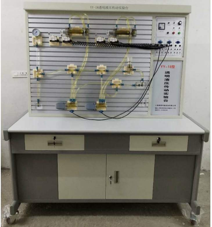 透明液壓傳動實驗臺,液壓傳動實驗室配備綜合液壓實驗臺及各種液壓閥,液壓傳動實驗裝置主要承擔《液壓傳動》、《液壓與氣壓》課程的實驗教學任務。通過模擬機床液壓與氣壓回路實驗,能夠使學生清楚了解各類液壓、氣動元件的結構和工作原理,初步掌握液動和氣動回路的基本特性和設計方法,通過完成液動和氣動基本回路搭建訓練,培養學生的動手能力和創新能力。