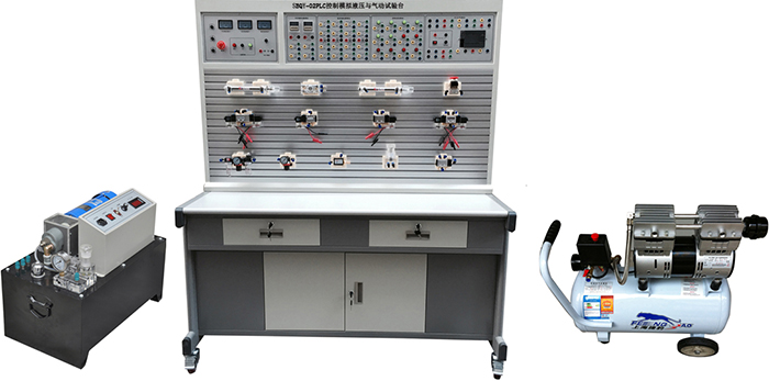 該實訓臺為鐵質雙層亞光密紋噴塑結構。美觀大方,堅固耐用,操作方便。基本配置為:氣動實訓元件1;氣動實訓PLC控制模塊1套;低噪音空壓機1臺;液壓實訓元件1套,液壓實訓PLC控制模塊1套;液壓實訓泵站1臺。(計算機根據學校要求另行配置)